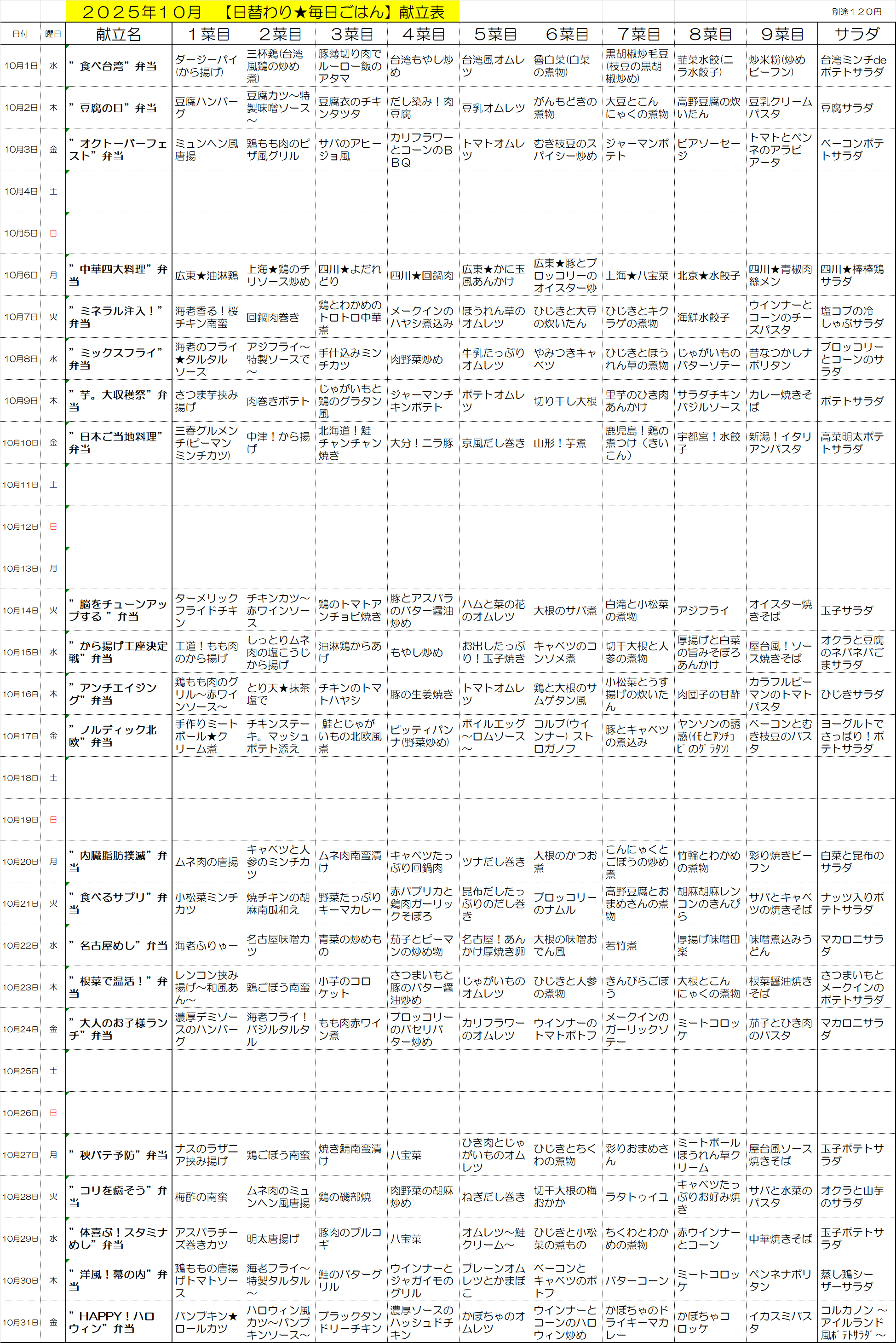 週間メニュー
